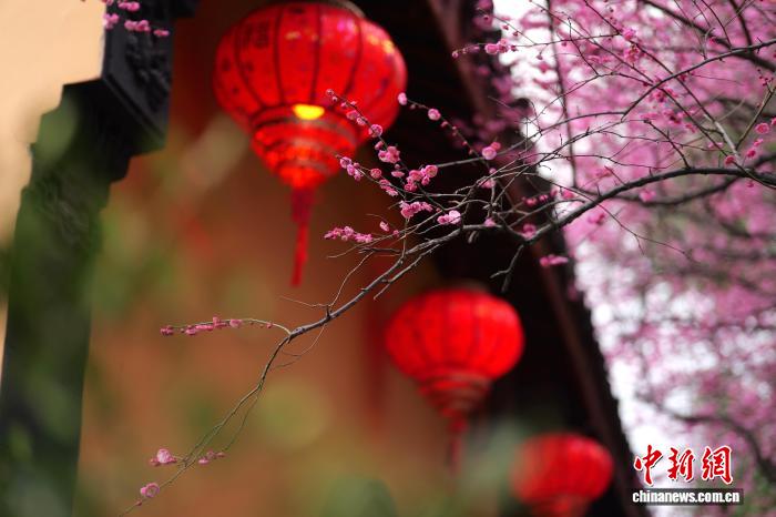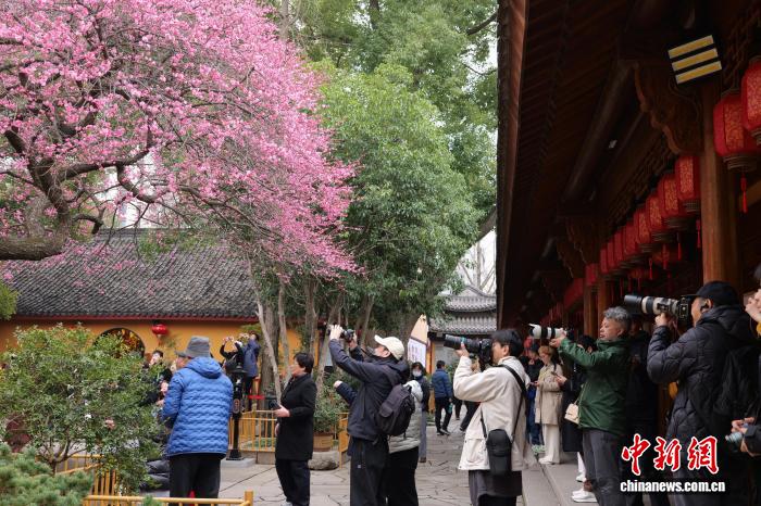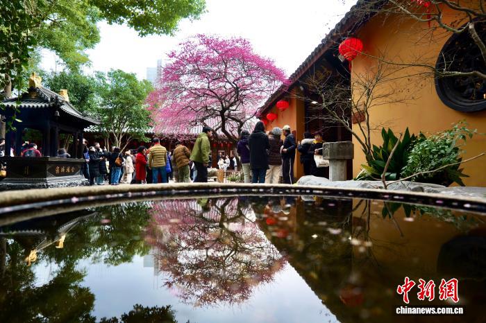 (新春走基层)浙江湖州铁佛寺百年六瓣红梅迎春绽放 引客打卡